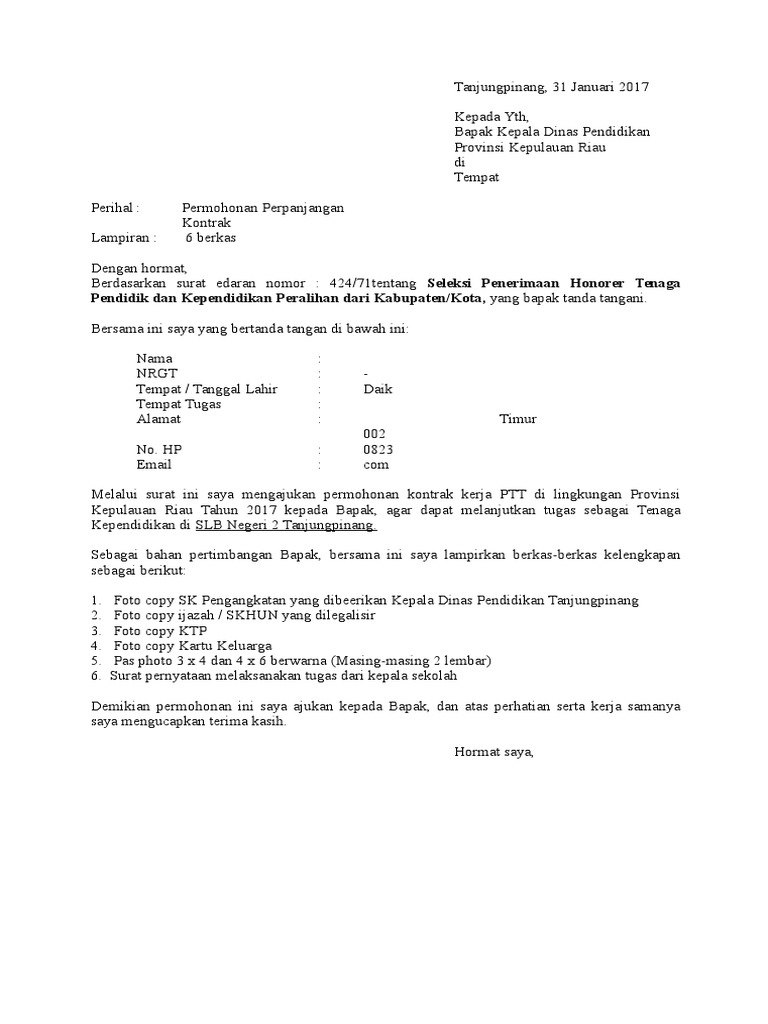 Contoh Surat Permohonan Perpanjangan Sk : Permohonan Rekomendasi Perpanjangan Izin Kawasan Berikat : Maka ia akan akan mengajukan permohonan kepada pihak tertentu untuk memberikan bantuan, dana, kerjasama atau mungkin rekomendasi.. Surat permohonan sendiri dapat bersifat resmi atau pun tidak resmi. Oleh sebab itu, banyak ditemukan contoh surat penawaran, contoh surat pembelian dan juga contoh surat permohonan untuk menunjang aktivitas bisnis tersebut. Perpanjangan sk guru bantu provinsi tahun 2017. Permohonan yang ditujukan macamnya banyak sekali, mulai dari memohonan izin. Contoh surat permohonan sk bupati walikota untuk penerbitan nuptk.
