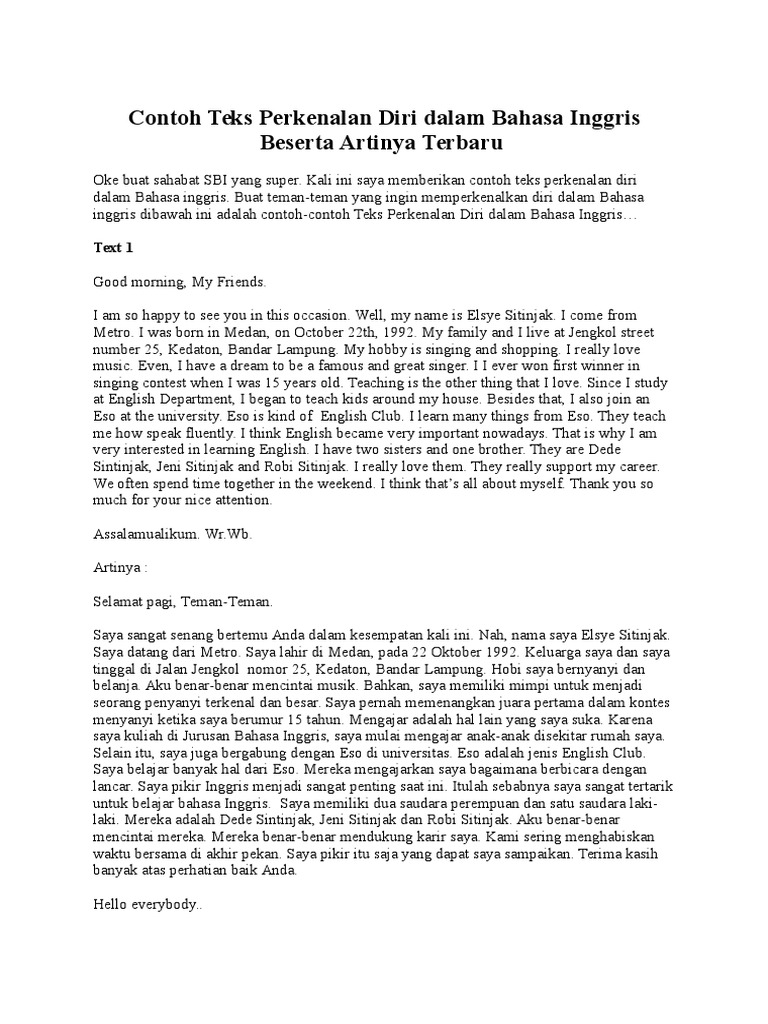 As ever, best regards, kindest regards, best wishes, regards, best. Tuliskan contoh teks perkenalan diri dalam bahasa sunda! Kali ini saya memberikan contoh teks perkenalan diri dalam bahasa inggris. Oke buat sahabat sbi yang super. Berikut tips memperkenalkan diri di depan kelas disertai beberapa contoh teks perkenalan guru dan murid baru dalam bahasa indonesia dan inggris. Teks perkenalan diri yang menarik adalah teks yang mengandung 4 poin di atas dan disusun secara singkat dan jelas, berikut contoh yang bisa menjadi gambaran buat anda: Berikut contoh teks talking about family dalam bahasa inggris: Apabila ada yang belum jelas, silakan tulis pertanyaan di kolom komentar. Contoh percakapan perkenalan lewat wa/ fb dalam bahasa sunda. Contoh teks perkenalan dalam bahasa inggris. 4 kumpulan perkenalan diri dengan pengalaman berkesan bahasa sunda. Kali ini saya memberikan contoh teks perkenalan diri dalam bahasa inggris. Kalian dapat menyimaknya di bawah ini.