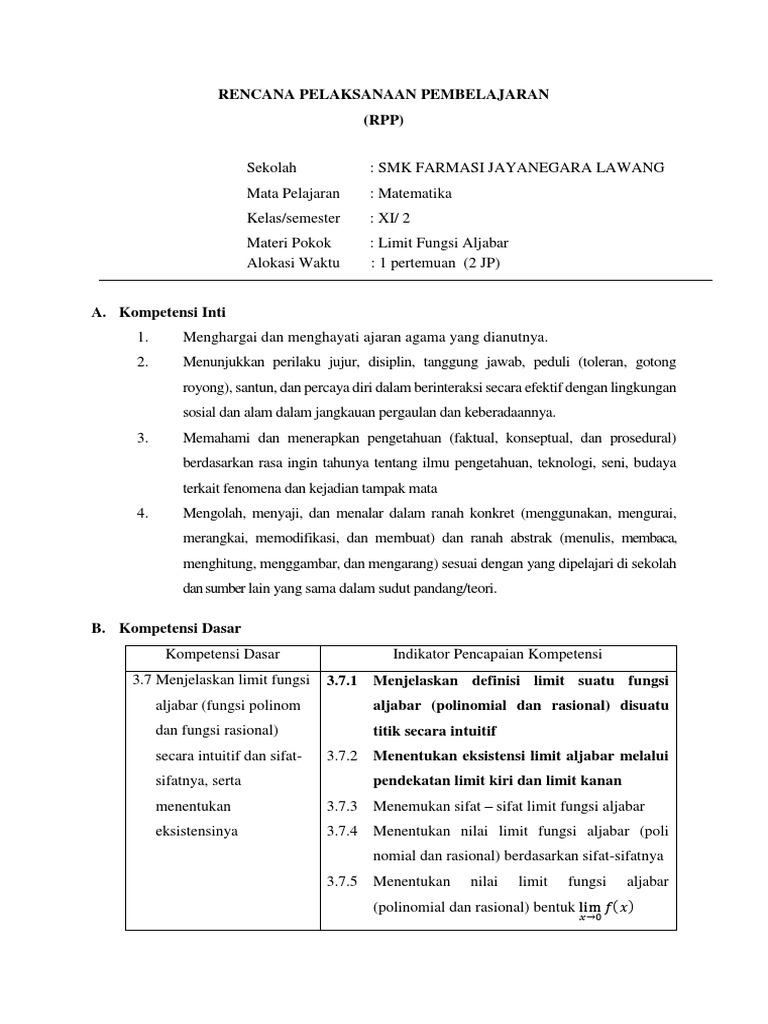 Di kelas 11 ini, materi matematika adalah sebagai berikut. Penyelesaian limit fungsi aljabar menggunakan super dan perkalian sekawan. Download as docx, pdf, txt or read online from scribd. Dengan genggaman sebanyak lima kali. Jika kamu ingin menyebarluaskan artikel ini, kamu dapat mengcopynya dengan menyertakan sumber link asli di bawah. Sebelum anda mendownload buku matematika kelas 10 kurikulum 2013 edisi revisi 2016 dan buku matematika kelas 11 kurikulum 2013 edisi revisi 2017 berikut ini saya berikan dulu peta materi untuk mapel matematika wajib umum jenjang sma kelas x dan kelas xi berdasarkan pada permendikbud terbaru tentang ki dan kd yakni permendikbud nomor 24 tahun 2016. Powerpoint matematika wajib kelas xi semester 1. 852016 rangkuman materi limit kelas 11. 100%(1)100% found this document useful (1 vote). Limit fungsi aljabar merupakan materi matematika wajib yang diajarkan di kelas xi. Penulis harap kamu selalu dalam keadaan sehat dan tetap se… Statistika peluang trigonometri lingkaran suku banyak fungsi komposisi dan fungsi invers limit fungsi turunan derivatif silahkan ke. Harapan kami, dengan powerpoint ini bapak/ibu guru dapat mengembangkan pembelajaran secara kreatif dan interaktif.